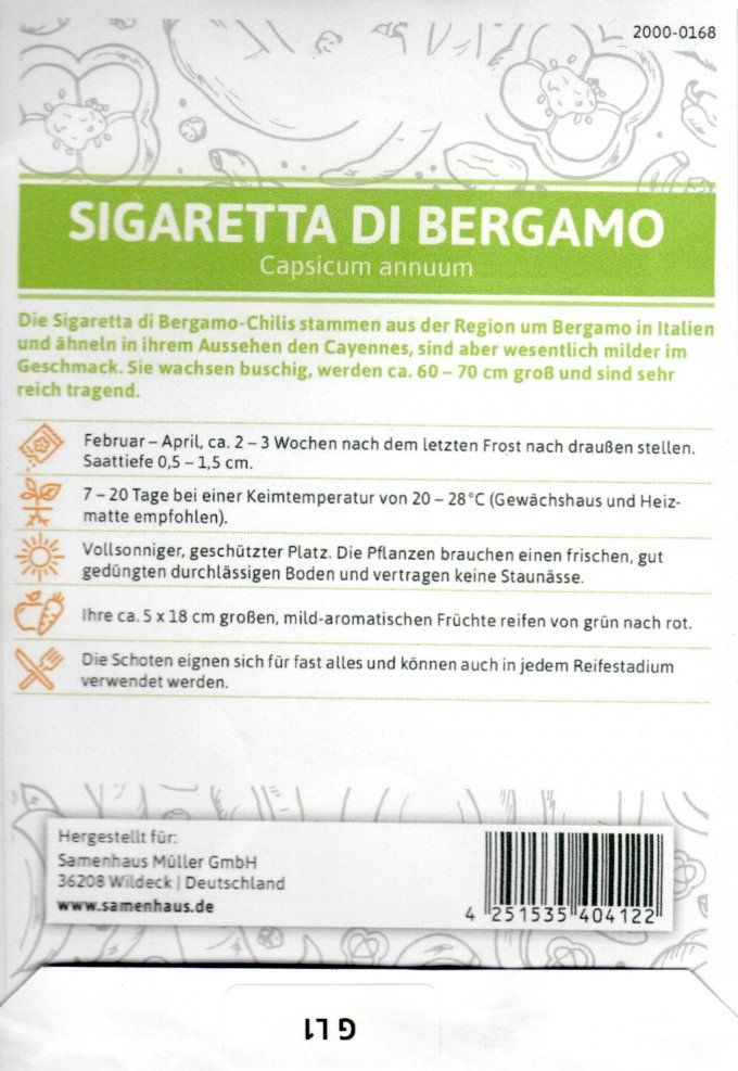 - Chili Sigarette die Bergamo,Chilisamen von Flortus